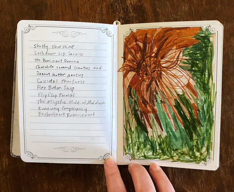 One of the things I like to do in my little blank books is write down funny nonsense phrases. Things like: