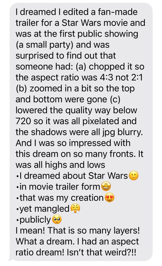 My brother texted me recently about a dream he had. He told me about it because he couldn’t believe his unconscious brain could author such a sophisticated story.